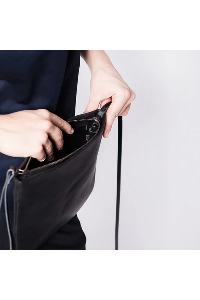 Deze beschrijving is automatisch vertaald:Kleur: zwart Samenstelling: plantaardig gelooid leer koe, metalen rits en hulpstukken afmetingen: breedte 30 hoogte 21 verstelbare riem: lengte 150, spoorbreedte 1 erev M een middelgrote handtas. Sluit met een rits afgewerkt met een lederen handvat, die door je hand kan worden gebracht. Comfortabel om te dragen als een handtas, opgehangen aan de kant of klassiek over de schouder op een verstelbare dunne riem. De Erev M kan ook gebruikt worden als een geval iPad mini.