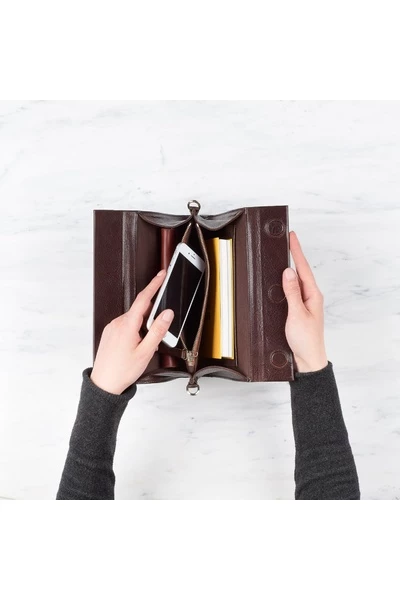 Deze beschrijving is automatisch vertaald:Kleur: bruin Samenstelling: plantaardig gelooid runderleer, katoenen voering, metaalritssluiting Afmetingen: breedte 24cm, hoogte 18 cm, diepte 8-15cm lengte van de verstelbare band: 102-120cm breedte 3,5 cm; Handvat lengte: 53 cm, breedte 3,5 cm; Chain length: 110 cm, breedte 0,7 cm Gala is een elegante handtas voor grote evenementen. Dankzij de ruime, doos vorm, zal het past allemaal handige accessoires. Binnen is verdeeld in twee compartimenten, een ingenaaid rits en is afgesloten met een magneet. Dankzij de verwisselbare bandjes, kan de zak klassiek gedragen worden op een verstelbare schouderriem, met een kortere greep, of als clutch bag.