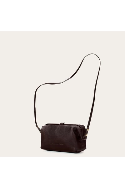 Plantaardig gelooid rundleer, metalen hardware, rail en sluiting
