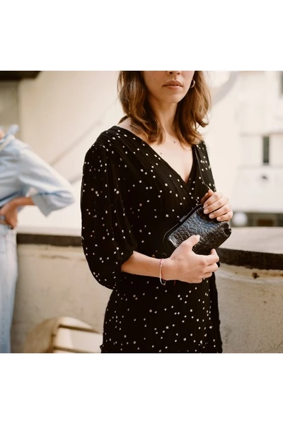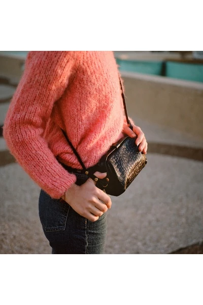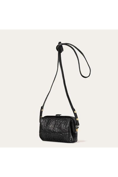 Deze beschrijving is automatisch vertaald:Kleur: zwart krokodil patroon Samenstelling: plantaardig gelooid leer koe, metalen hulpstukken, spoor en sluiting Afmetingen: breedte 15 cm, hoogte 10 cm, diepte 7cm Afneembare Band: lengte 155 cm, breedte 1 cm Rofe is een klassieke handtas. De elegante afwerking en de iconische vorm van de beurs geven het een unieke nieuwe vintage karakter. Het is verkrijgbaar in drie basiskleuren en twee maten – S en M. Dankzij de afneembare riem, kan de Rofe worden gehouden in uw hand als een clutch bag. Het is ook comfortabel op lange band – hing over de schouder of op een korte – op de schouder of in de hand.
